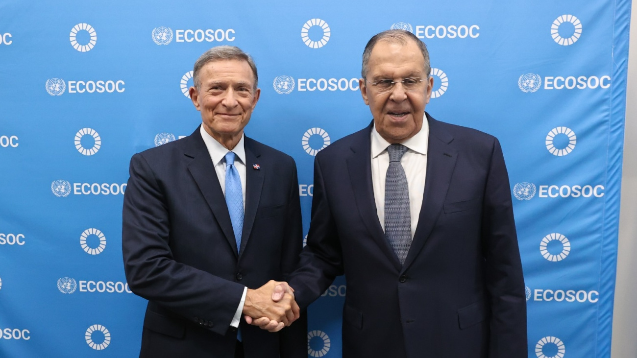 New York, Estados Unidos. – El ministro de Relaciones Exteriores, Roberto Álvarez, y su homólogo de la Federación de Rusia, Sergey Lavrov, sostuvieron una reunión en Naciones Unidas en la que conversaron sobre temas de interés bilateral y el fortalecimiento de sus relaciones diplomáticas, comerciales y de cooperación