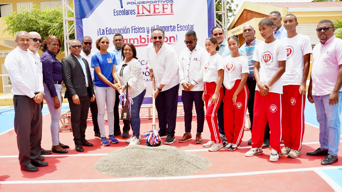San Juan de la Maguana.- Con la presencia de autoridades municipales, funcionarios del sector educativo y dirigentes deportivos, el Instituto Nacional de Educación Física (Inefi) inició este viernes los trabajos de construcción de un moderno polideportivo techado en el Instituto Politécnico San Miguel Fe y Alegría, en el Distrito Educativo 02-06, de esta región sureña.