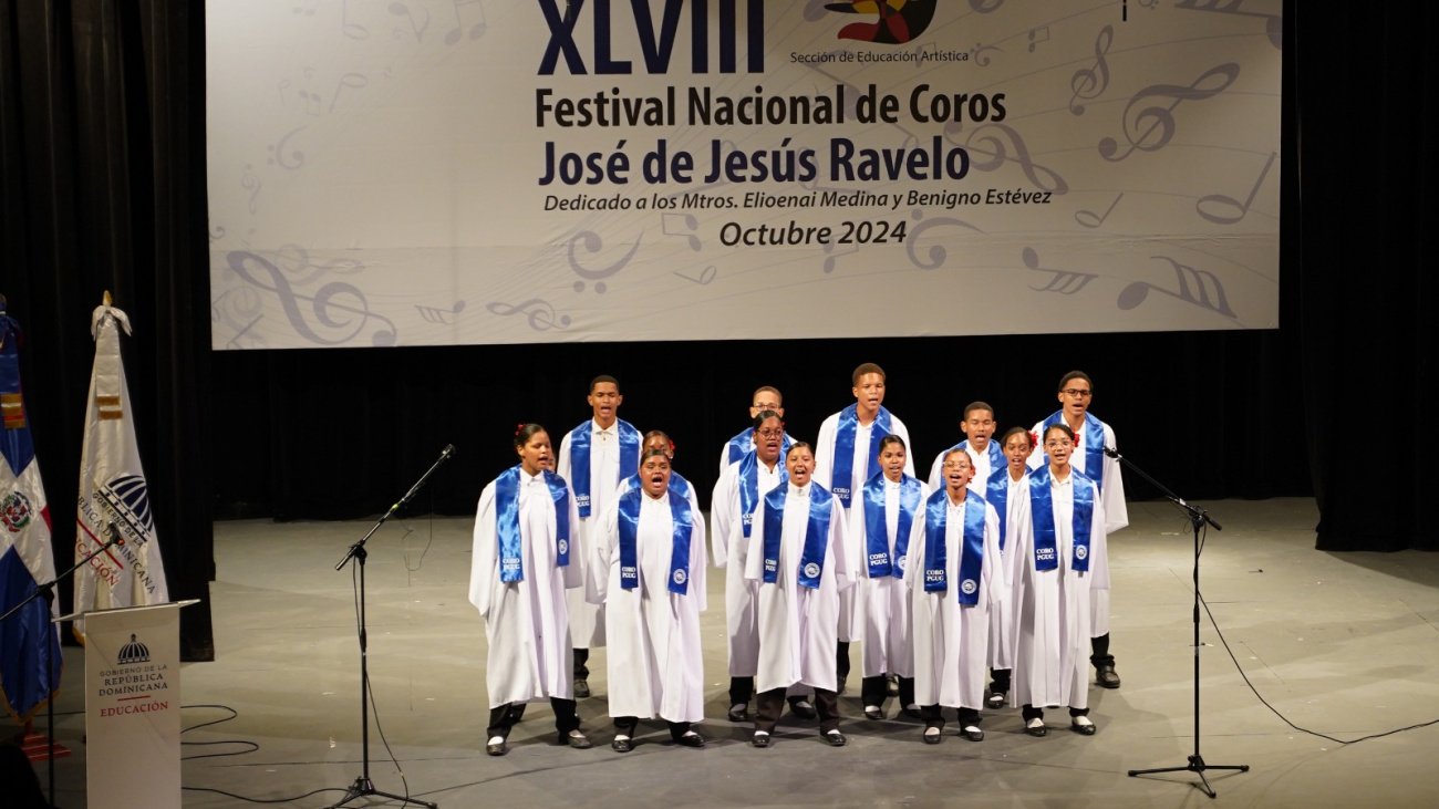 Santo Domingo.- Con un despliegue de talento y creatividad, agrupaciones corales estudiantiles de las 18 Regionales del Ministerio de Educación de la República Dominicana (Minerd) encabezaron la cuadragésima versión del Festival de Coros “José de Jesús Ravelo”, en la Sala Máximo Avilés Blonda del Palacio Nacional de Bellas Artes Freddy Beras Goico.